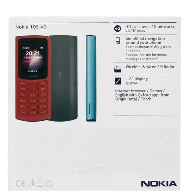 Nokia 105 – обновлённая версия популярного сотового телефона. Теперь она поддерживает общение в сетях 4G.