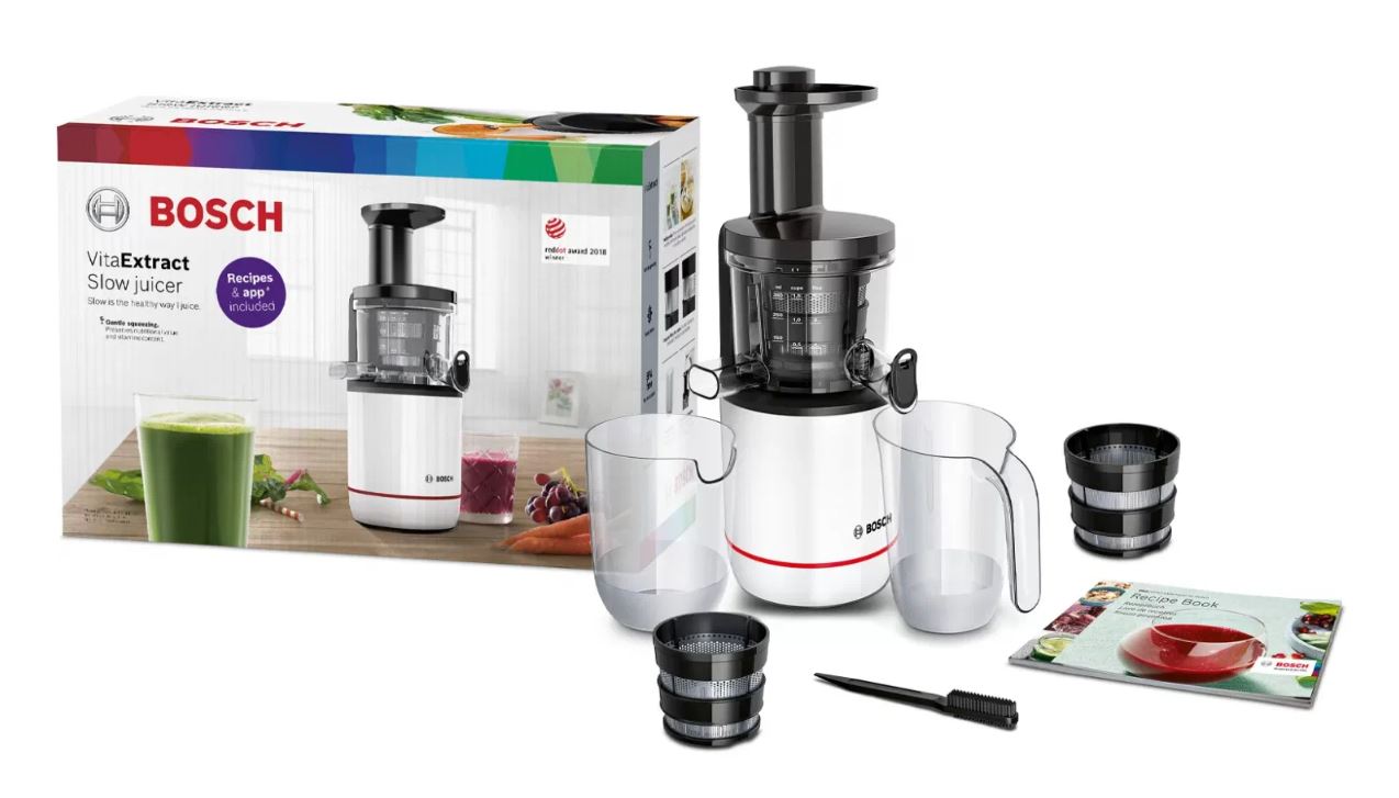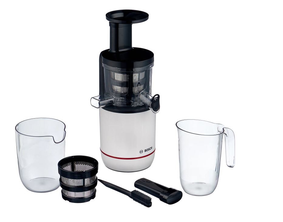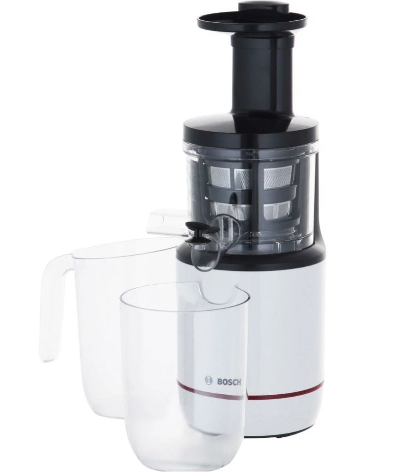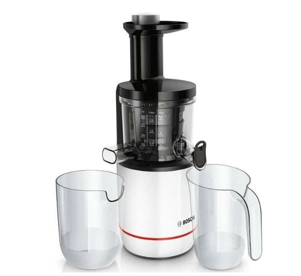 С соковыжималкой электрической Bosch MESM500W вы сможете получить натуральный сок, приготовленный в домашних условиях, и полностью отказаться от пакетированных и бутилированных соков, приобретаемых в магазинах. В процессе приготовления сока устройство сохранит аромат и питательную ценность овощей и фруктов. Модель оснащена надежным и эффективным мотором, чья мощность равняется 150 Вт. За счет невысокой скорости вращения прибор работает достаточно тихо, в результате чего вы сможете приготовить сок в любое время суток.