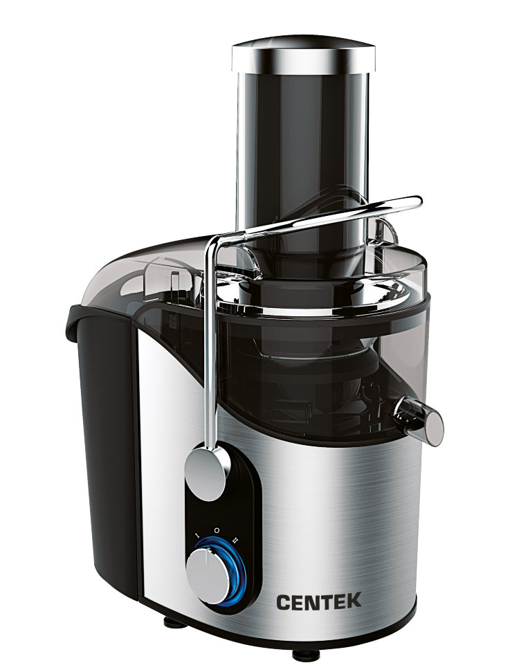 Соковыжималка Centek CT-1212 имеет лаконичный дизайн и выполнена в корпусе из нержавеющей стали. Модель характеризуется мощностью 1200 Вт и наличием двух скоростей. Емкость для сока представляет собой съемный стакан из пластика объемом 1100 мл. Объем резервуара для мякоти составляет 1.7 литра. Для комфортного и безопасного использования в модели предусмотрены прорезиненные ножки и функция защиты от перегрева.