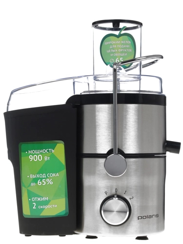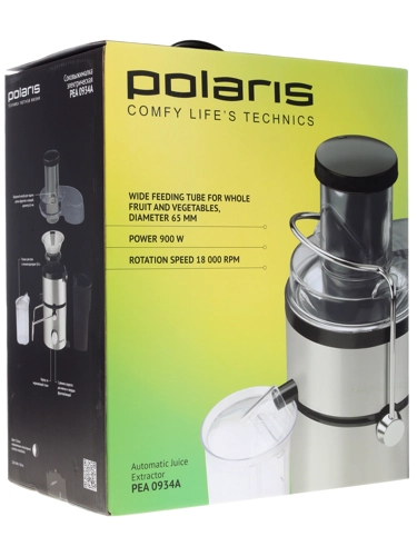 Свежие, полезные, вкуснейшие и натуральные соки из овощей и фруктов в домашних условиях – это все соковыжималка электрическая Polaris PEA 0934A. Это компактный прибор, который не займет много места на вашей кухне и при этом обеспечит вас всеми полезными веществами, сохраняющимися в приготовленных с помощью прибора соках. Объемы резервуара для сока и для мякоти составляют 400 мл и 1250 мл соответственно, выброс мякоти происходит автоматически. За безопасность применения Polaris PEA 0934A отвечают защита от случайного включения, от перегрузки, за устойчивость на поверхности при работе – прорезиненные ножки. Устройство отличается двумя скоростями работы для любых овощей и фруктов.