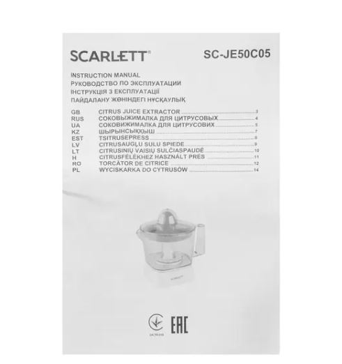 Соковыжималка электрическая Scarlett SC-JE50C05 представлена в компактном пластиковом корпусе с прозрачным резервуаром на 800 мл для сбора готового сока. Устройство предназначено для обработки цитрусовых. Данная модель действует при наличии одной скорости и мощности 40 Вт от стандартной электросети.