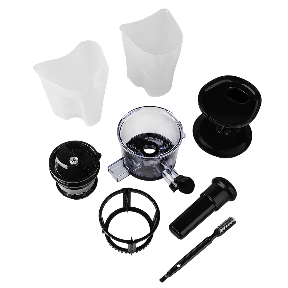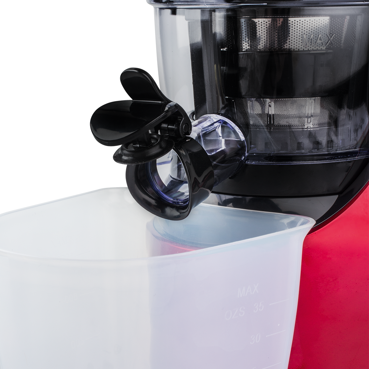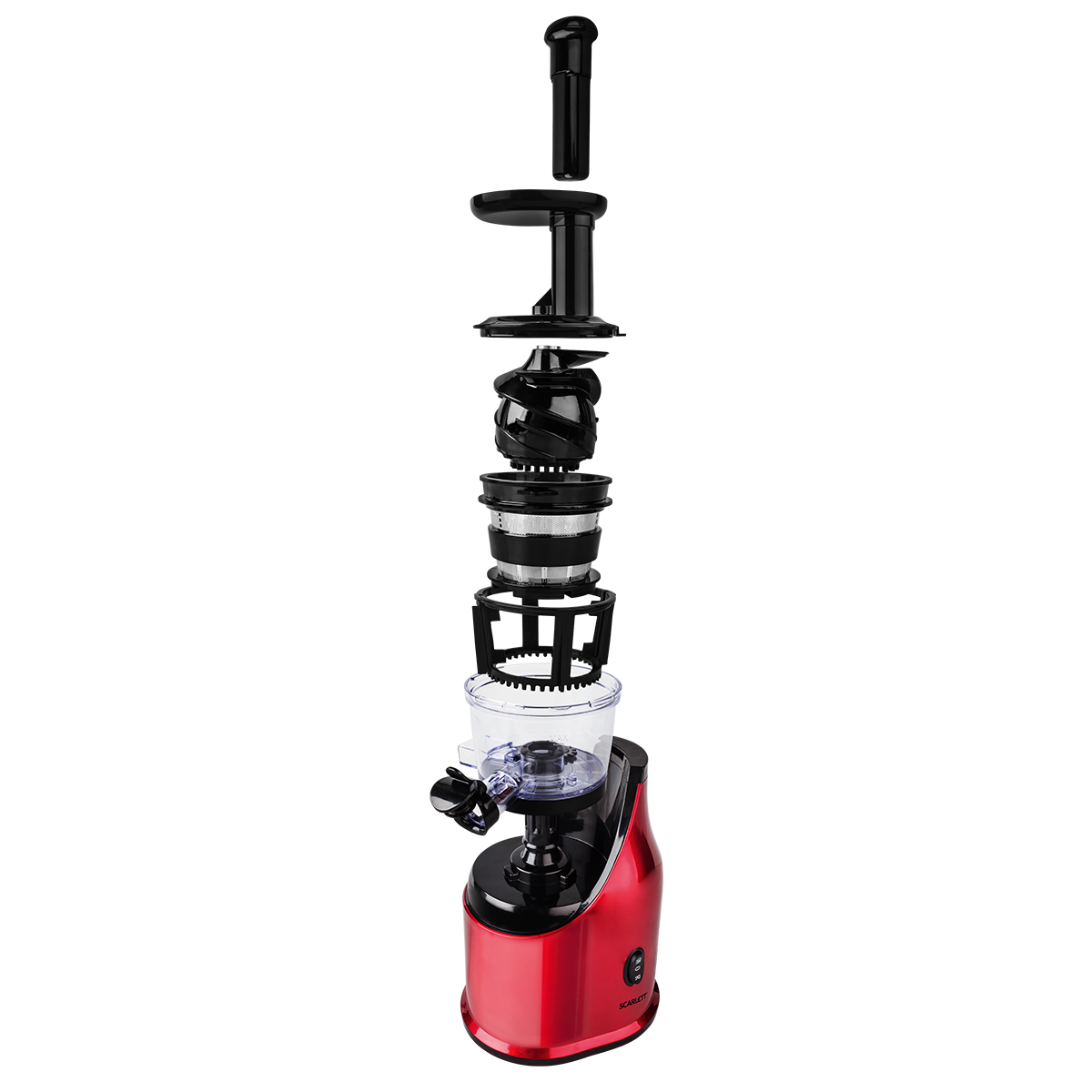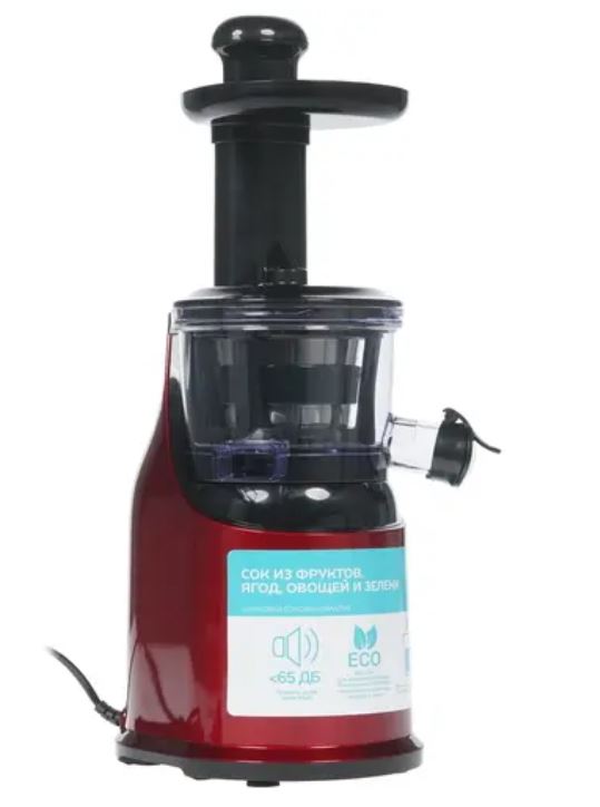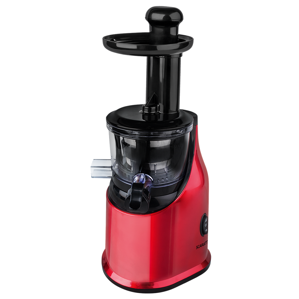 Для удобной загрузки ингредиентов в соковыжималке электрической Scarlett SC-JE50S33 имеется загрузочный лоток. Чтобы крупные куски легко проходили в горловину, можно использовать толкатель. Особенностью соковыжималки является ее тихая работа. Кроме того, в случае застревания отдельных кусков в шнековом механизме, можно воспользоваться реверсивным режимом. Прорезиненные ножки делают соковыжималку более устойчивой.