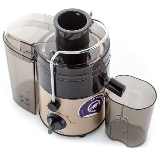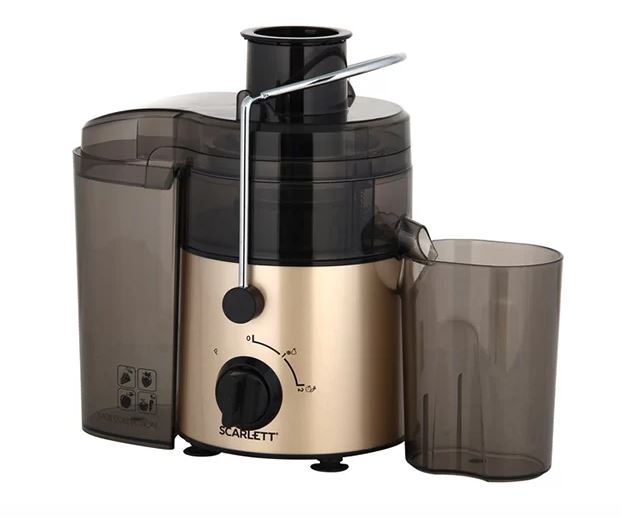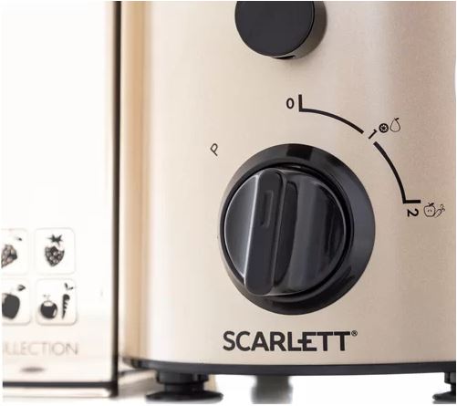 Соковыжималка Scarlett SC-JE50S34 имеет отверстие для загрузки диаметром 6 см, что позволяет перерабатывать целые или нарезанные большими кусками овощи и фрукты. Противокапельная система препятствует вытеканию жидкости после деактивации устройства, способствуя поддержанию чистоты на поверхности кухонной мебели. Съемный резервуар вмещает 0,6 л и оснащен мерной шкалой для точного определения объема содержимого. Для сбора мякоти в конструкции предусмотрена отдельная емкость. При помощи поворотного регулятора можно установить один из трех скоростных режимов.