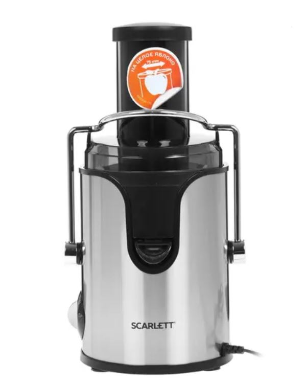 Соковыжималка электрическая Scarlett SC-JE50S38 - производительное устройство для пользователей, которые не желают довольствоваться магазинными пакетированными соками и хотят побаловать себя и своих близких свежевыжатым соком. Устройство за счет металлического исполнения корпуса получило стильную серебристую расцветку, которая гармонично сочетается с черными конструктивными элементами. Высокая мощность, равная 1000 Вт, вместе с центробежным механизмом позволяет технике быстро справляться с процедурой приготовления сока из свежих фруктов и овощей.