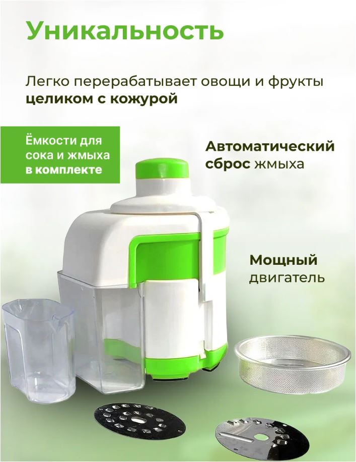 Соковыжималка Журавинка СК СВСП 102П позволит вам и вашим близким наслаждаться вкусным и витаминным напитком ежедневно, не прикладывая лишних усилий. Особенность этого устройства заключается в возможности использовать его для заготовки больших объемов сока. Благодаря технологии автоматического выброса мякоти вы не будете тратить время на очищение готового напитка от посторонних примесей.