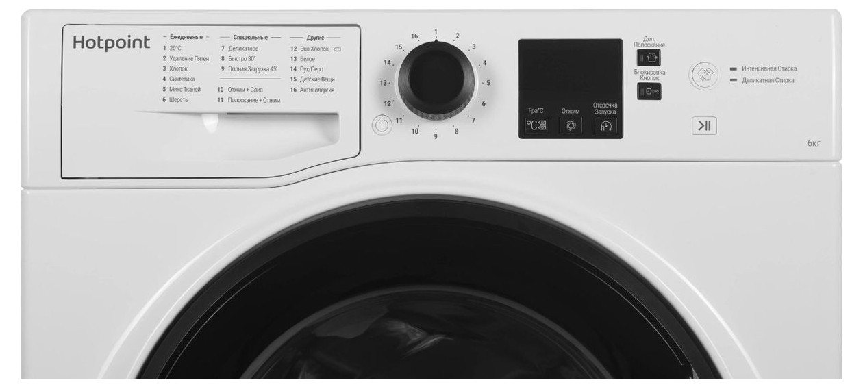 Стиральная машина Hotpoint NSS 6015 K RU поддерживает возможность загрузки забытой одежды прямо во время цикла. Доступ к 16 программам открывается через кнопки и поворотный переключатель. Активация антиаллергенного режима обеспечивает тщательное полоскание одежды для эффективной нейтрализации остатков моющих средств.