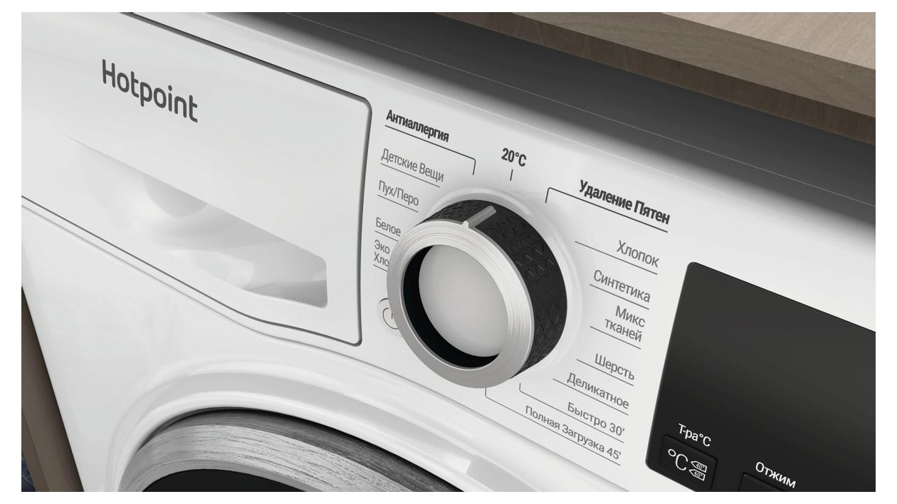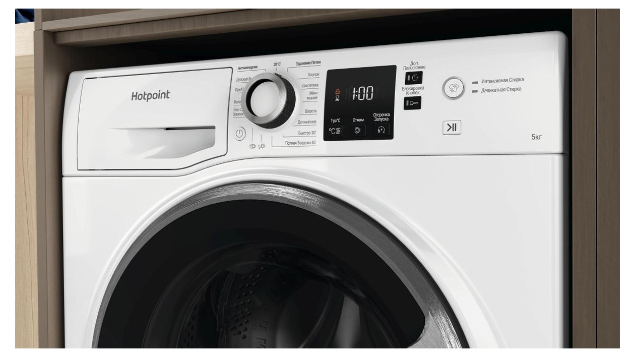 Hotpoint NUS 5015 S RU дополнена системой автобаланса для снижения опасного уровня вибрации. Вы можете использовать режимы антиаллергенной, деликатной и интенсивной стирки, выбирать программы полной загрузки, отсрочки запуска. Возможность блокировка панели управления от любопытных детей позволяет сохранять заданные настройки.