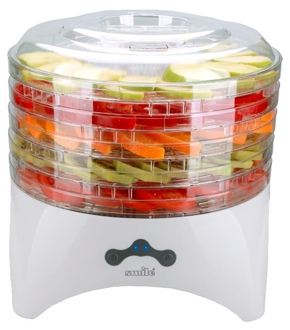 Сушилка для овощей и фруктов Smile FD 993 белого цвета оснащена особой технологией, не позволяющей прибору выйти из строя даже при длительной работе. В модели Smile FD 993 предусмотрено пять вместительных секций для сушки овощей, фруктов и грибов. А благодаря функции регулировки Вы сможете выбрать высоту каждой из них.