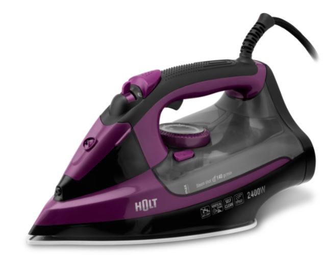 Утюг HOLT HT-IR-002 мощностью 2400 Вт. обеспечивает эффективное разглаживание разных видов тканей и устранение складок в труднодоступных местах благодаря металлокерамической подошве, которая свободно скользит по поверхностям и обладает желобком для пуговиц. Тщательно обработать пересушенную одежду позволяет паровой удар, подаваемый со скоростью 140/мин.