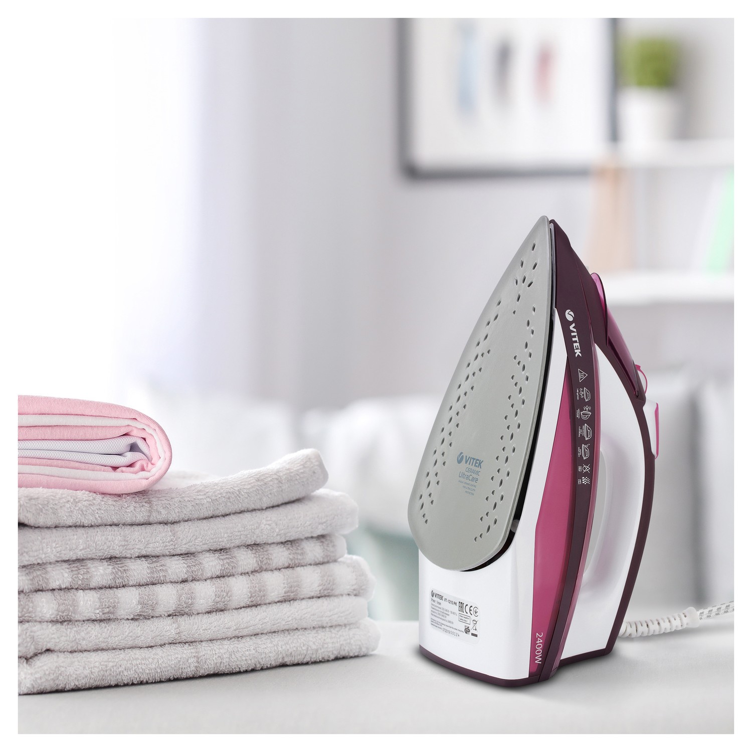 Утюг Vitek VT-1215 PK – это гарант отсутствия складочек на Вашей одежде. Это быстрое и комфортное утюжение постельного белья с минимумом энергозатрат. Данная модель потребляет всего лишь 2400 Вт электроэнергии, которую она тратит на выпуск пара со скоростью 140 г/мин и нагрев подошвы. Для пересушенных на солнце или батареи отопления тканей существует функция разбрызгивания.