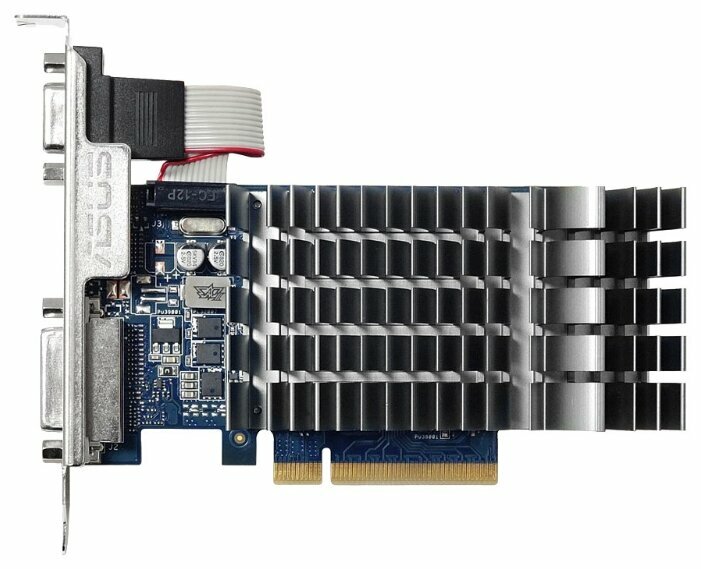 Видеокарта ASUS GeForce GT 710 Silent LP [710-2-SL] черно-синего цвета обладает поддержкой распространенных стандартов DirectX 12 и OpenGL 4.4. Применяется тип памяти DDR3 с разрядностью шины 64 бит. Объем памяти составляет 2 ГБ, а пропускная способность достигает 14.4 Гбайт/с. Для удобного подключения к плате применяется PCI-E-интерфейс версии 2.0. Видеокарта оснащена пассивным типом охлаждения.