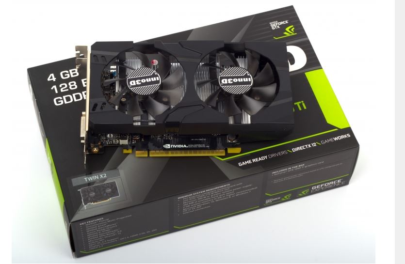 Для вывода картинки в разрешении 7680x4320 Inno3D GeForce GTX 1050 Ti Twin X2 предусматривает несколько разъемов, среди которых HDMI, DisplayPort, DVI-D. Два осевых вентилятора участвуют в активном воздушном охлаждении системы, что позволяет увеличить время игровых сессий.