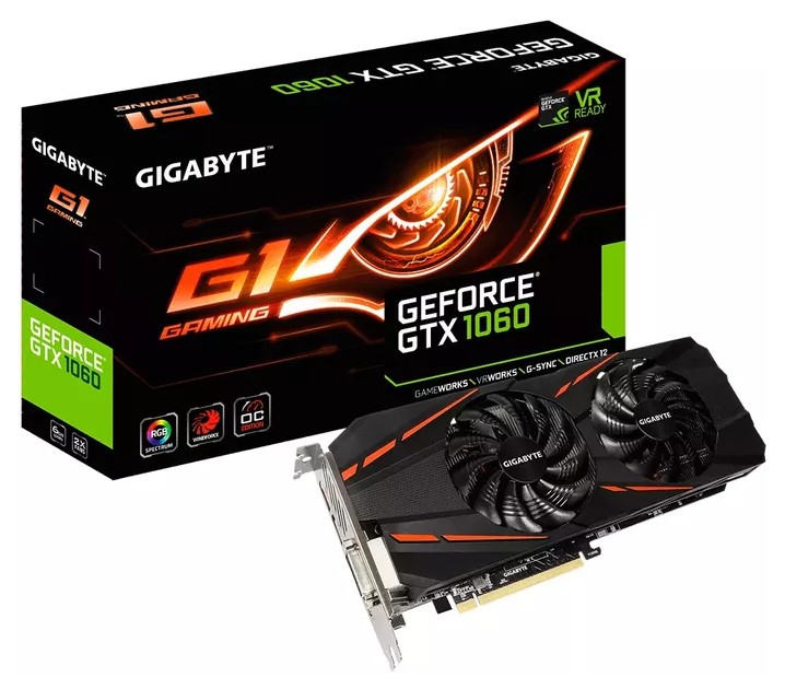 Видеокарта Gigabyte GeForce GTX 1060 G1 GAMING возьмет на себя обязанности графического контроллера Вашего ПК. Представленная модель способна стать комплектующим элементом офисной машины, также она прекрасно подойдет для построения ресурсоемкого видеоряда при запуске требовательных приложений в игровом ПК. Все функционирование данного оборудования производится на основе кристалла графического чипа NVIDIA GeForce GTX 1060. Рассматриваемая модель осуществляет поддержку таких популярных стандартов для создания видеоряда, как DirectX и OpenGL.