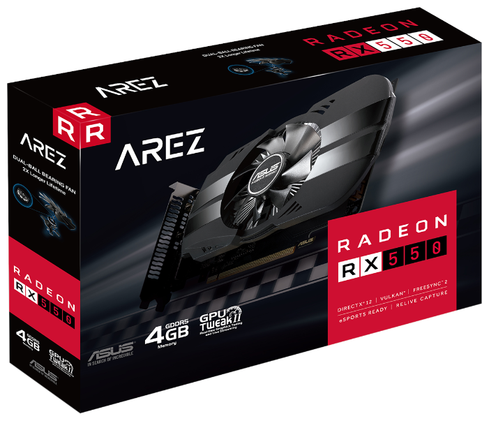 Видеокарта ASUS Phoenix Radeon RX 550 может похвастать увеличенным сроком службы за счет вентилятора с двойным шарикоподшипником, а безупречная надежность устройства обеспечивается полностью автоматизированным процессом производства (технология Auto-Extreme). При ее изготовлении применяются отборные компоненты Super Alloy Power II, а в комплект поставки входит эксклюзивная разгонная утилита GPU Tweak II с модулем онлайн-трансляций XSplit Gamecaster. Эта модель идеально подходит для соревновательных онлайн-игр, таких как Overwatch, Dota 2, CS Go и League of Legend.