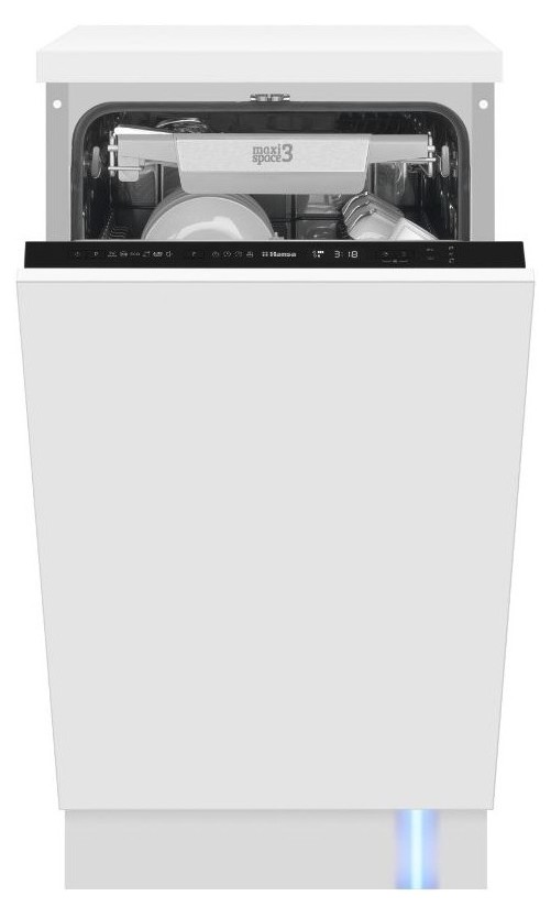 Встраиваемая посудомойка Hansa ZIM466ELH с габаритами 45см предлагает 6 режимов мойки, включая автоматический, экономичный и повседневный. Она вмещает 10 наборов посуды и имеет Aqua Stop для защиты от протечек воды. Старт можно отложить от 1 до 24 часов, а об окончании работы оповестит звуковой сигнал и индикатор “Blue Dot”. Устройство оснащено системой сушки HotAir и регулировкой высоты верхней корзины Up&Down System, общее количество корзин – 3. Функция Zone Wash позволяет сэкономить время и ресурсы, позволяя мыть посуду только в одной корзине. Во время работы посудомойки интеллектуальный индикатор “Blue Dot” мигает синим цветом на полу, а по завершении цикла начинает мигать и отключается