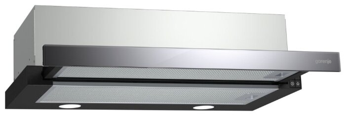 Вытяжка Gorenje BHP623E12BG с отводом воздуха интенсивностью до 435 м³/ч в проточном режиме эффективно устраняет нежелательные запахи, дым и испарения из кухни, препятствуя их распространению в смежные комнаты. Высокая степень очистки воздушного пространства помещения достигается также при работе устройства в рециркуляционном режиме, когда маслянистые примеси и продукты горения поглощаются жироулавливающим фильтром и угольным картриджем. Конструкция оснащена выдвижной панелью для всасывания воздуха, которая убирается в корпус, если устройство неактивно.
